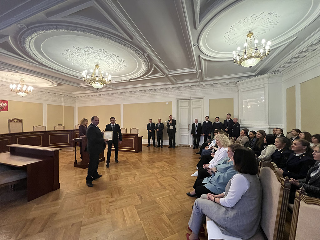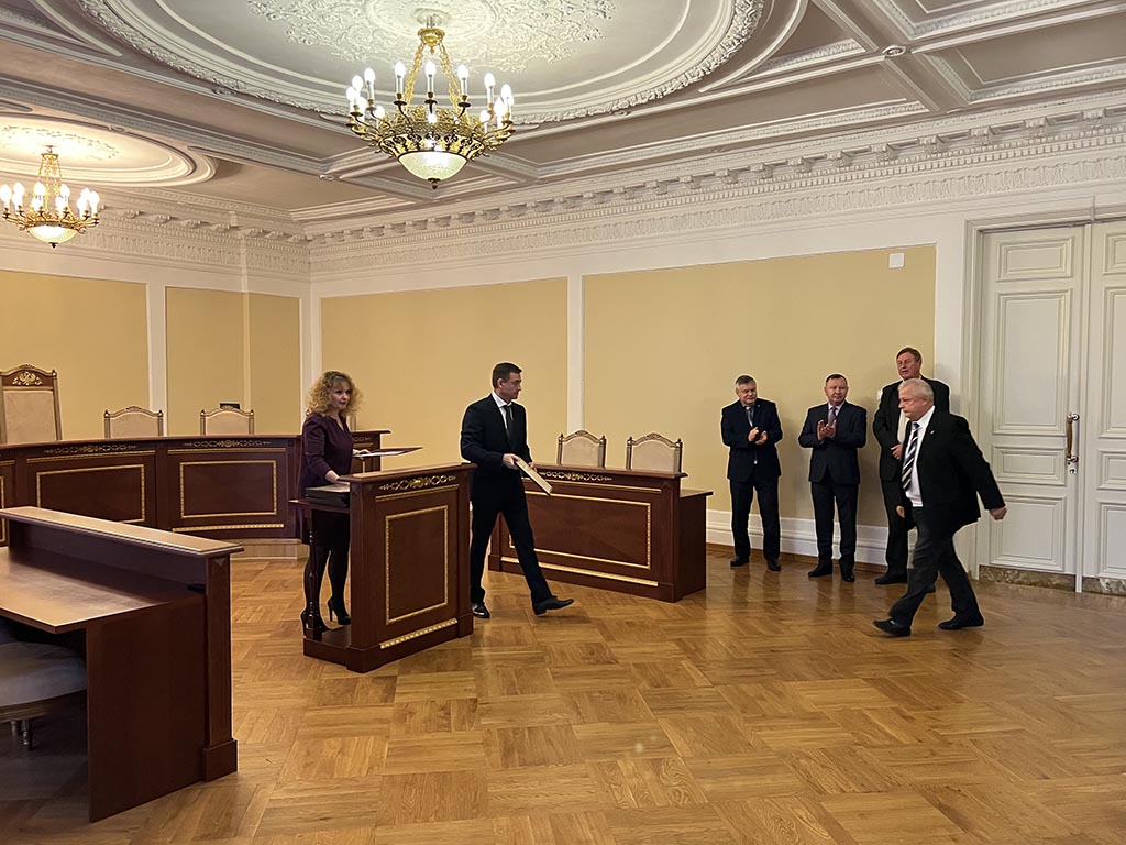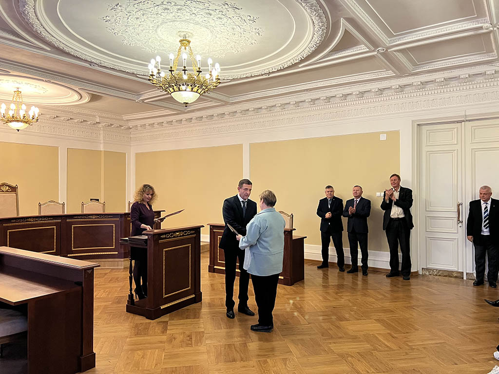 В связи с юбилеем врио председателя суда Возьный Артур Ярославович и в торжественной обстановке поздравил коллектив суда, пожелал всем крепкого здоровья, благополучия и новых успехов в судебной деятельности, а также вручил судьям и работникам аппарата суда почетные грамоты за добросовестный труд, высокий профессионализм, личный вклад в оперативное и качественное осуществление правосудия. |