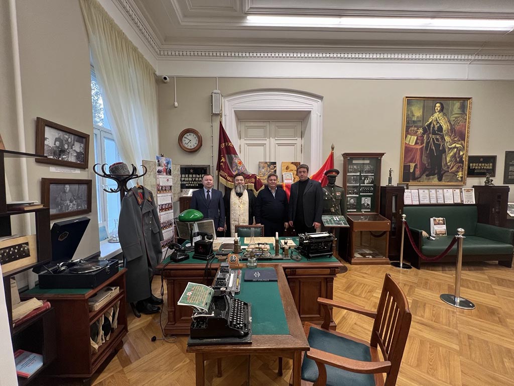 Также отцу Александру было рассказано о 105-летней истории окружного военного суда, являющегося прямым историческим и процессуальным правопреемником славных и героических традиций военных трибуналов Петроградского военного округа и Ленинградского фронта, проведена экскурсия по музею суда, занявшему по итогам конкурса I место среди всех музеев судов Российской Федерации, а также Главному храму передана в дар передана научная монография «Военный трибунал Ленинградского фронта в годы Великой Отечественной войны» и электронный носитель с документальными фильмами «Без срока давности» о судебном преследовании Военным трибуналом Ленинградского военного округа нацистских военных преступников. |